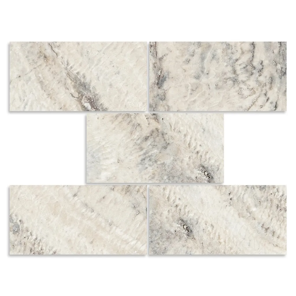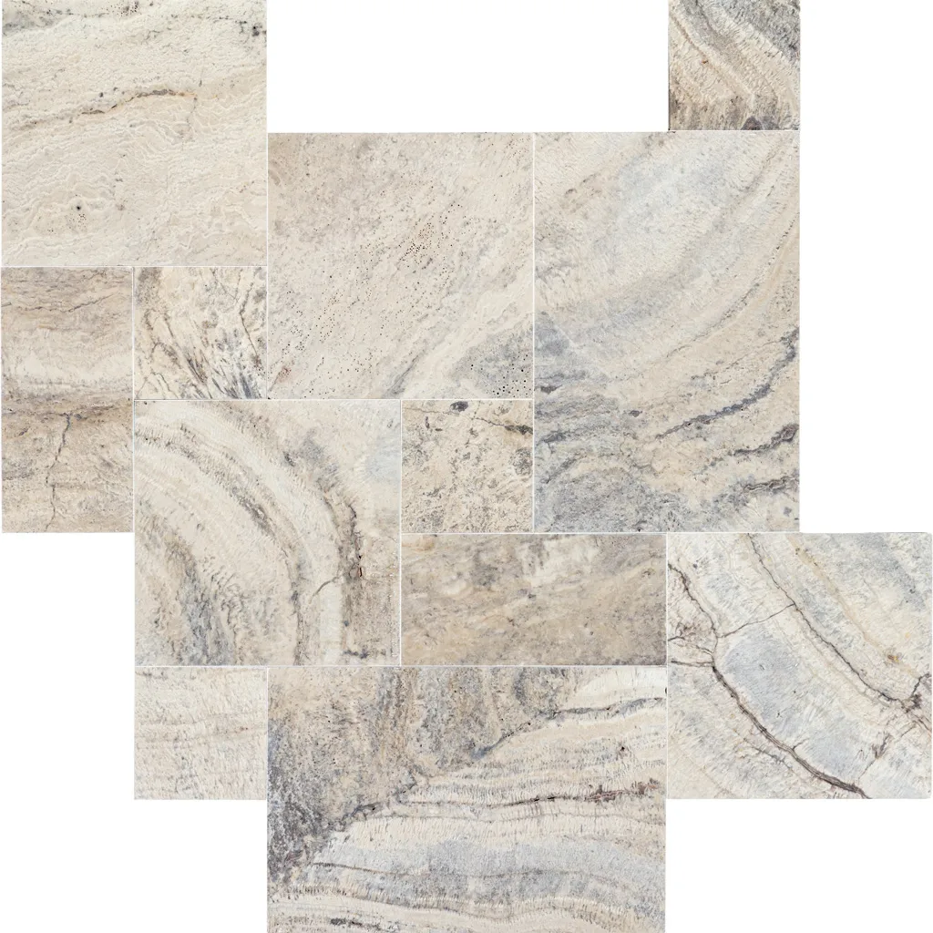 Elevate your outdoor living spaces with the sophisticated beauty of our Alaska Gray Travertine Pavers. This natural stone showcases a captivating blend of soft silver, ivory, and light taupe tones, complemented by delicate veining and subtle icy movement throughout each piece.