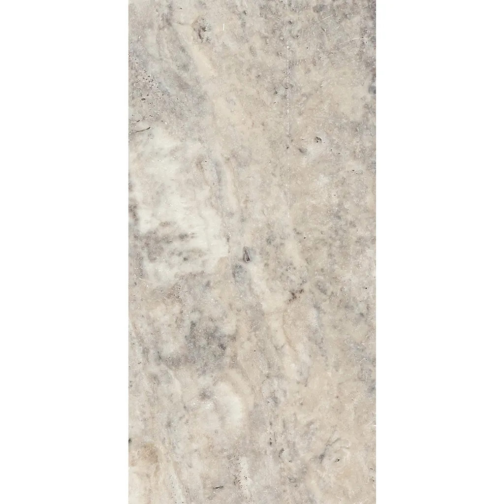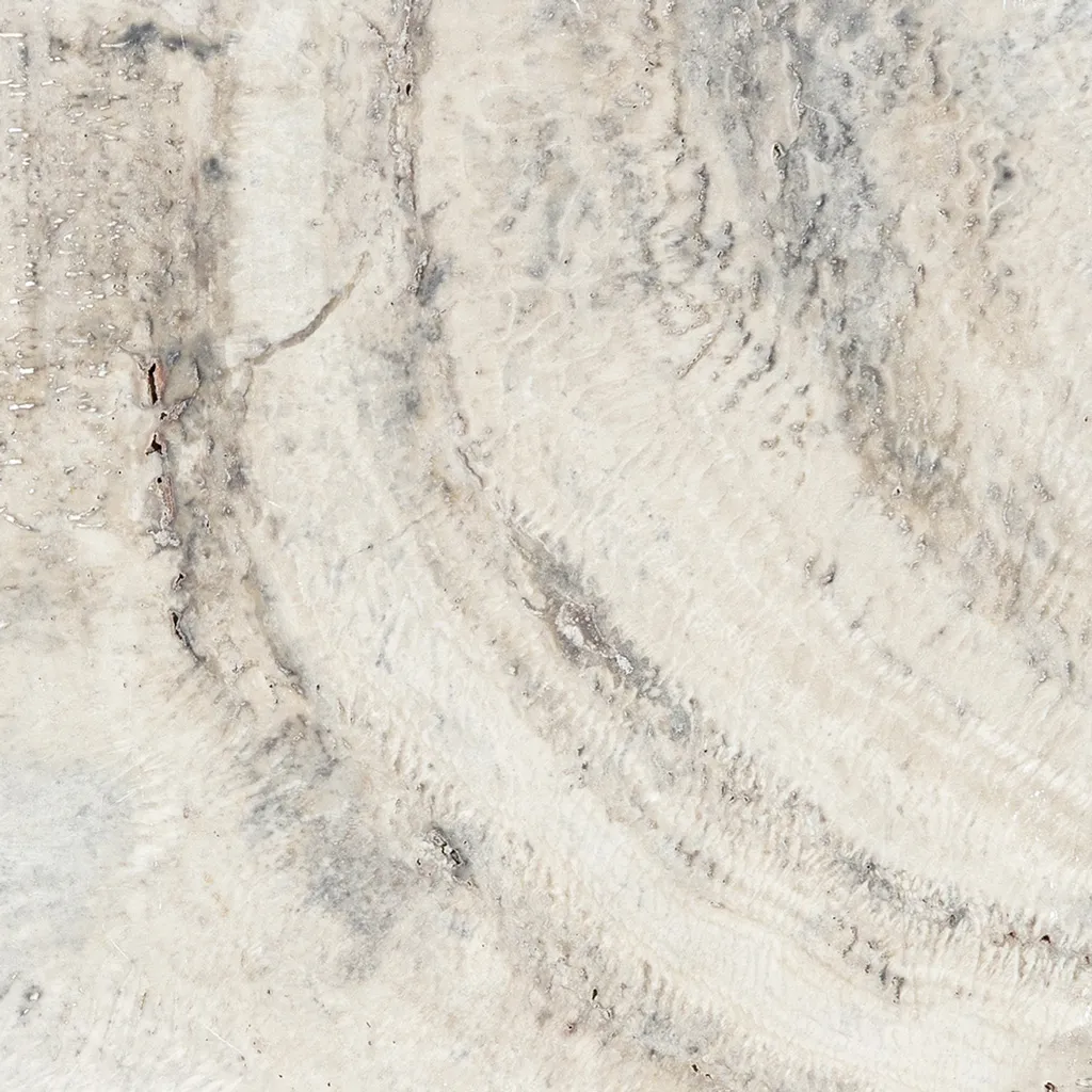 Beautiful choice! This travertine has cooler tones—silvery grays, soft creams, icy and subtle taupe veining—offering a more modern, elegant vibe while still keeping that classic, natural stone look.