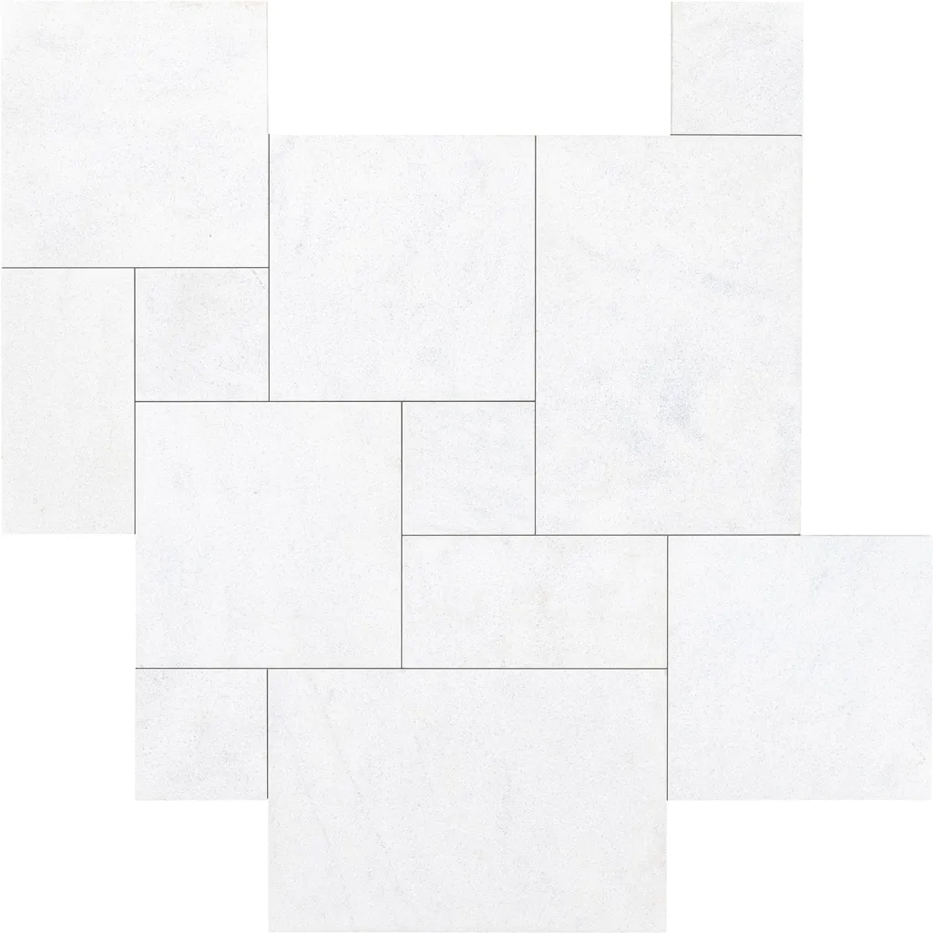 Crafted in the Roman and French (Versailles) Pattern layout delivers visual interest and flow, while the sandblasted finish provides a matte texture that’s both slip-resistant and glare-reducing. This paver stays cool underfoot and performs beautifully in high-sun environments, making it the perfect surface for luxury pool decks and patios.